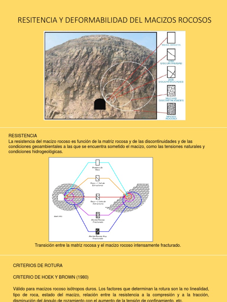 La resistencia del macizo rocoso es funcin de la matriz rocosa y de las discontinuidades y de las