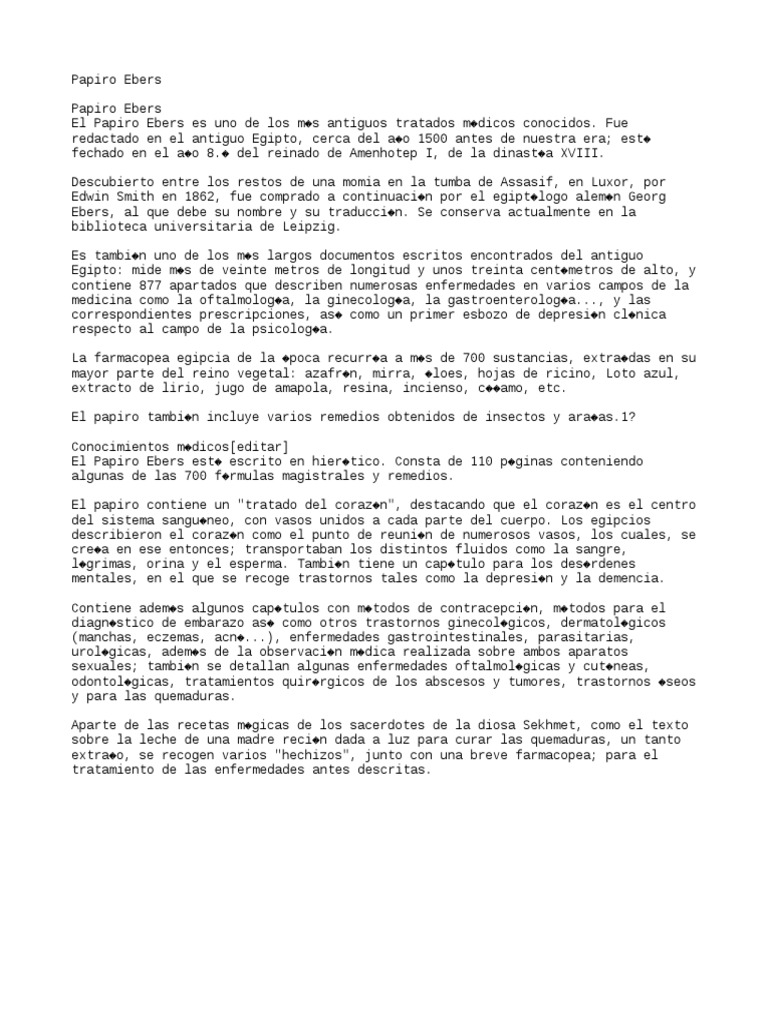 El Papiro Ebers es uno de los ms antiguos tratados mdicos conocidos. Fue