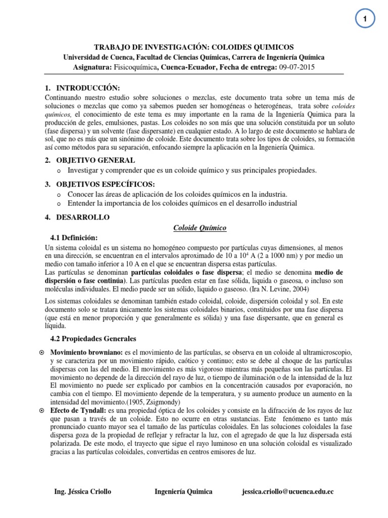 o Investigar y comprender que es un coloide qumico y sus principales propiedades.