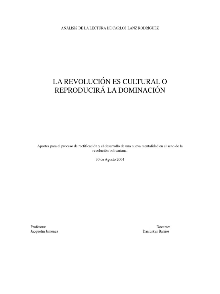 Lanz R. carlos (2004) La Revolucin Cultural o Reproducir la Dominacin.