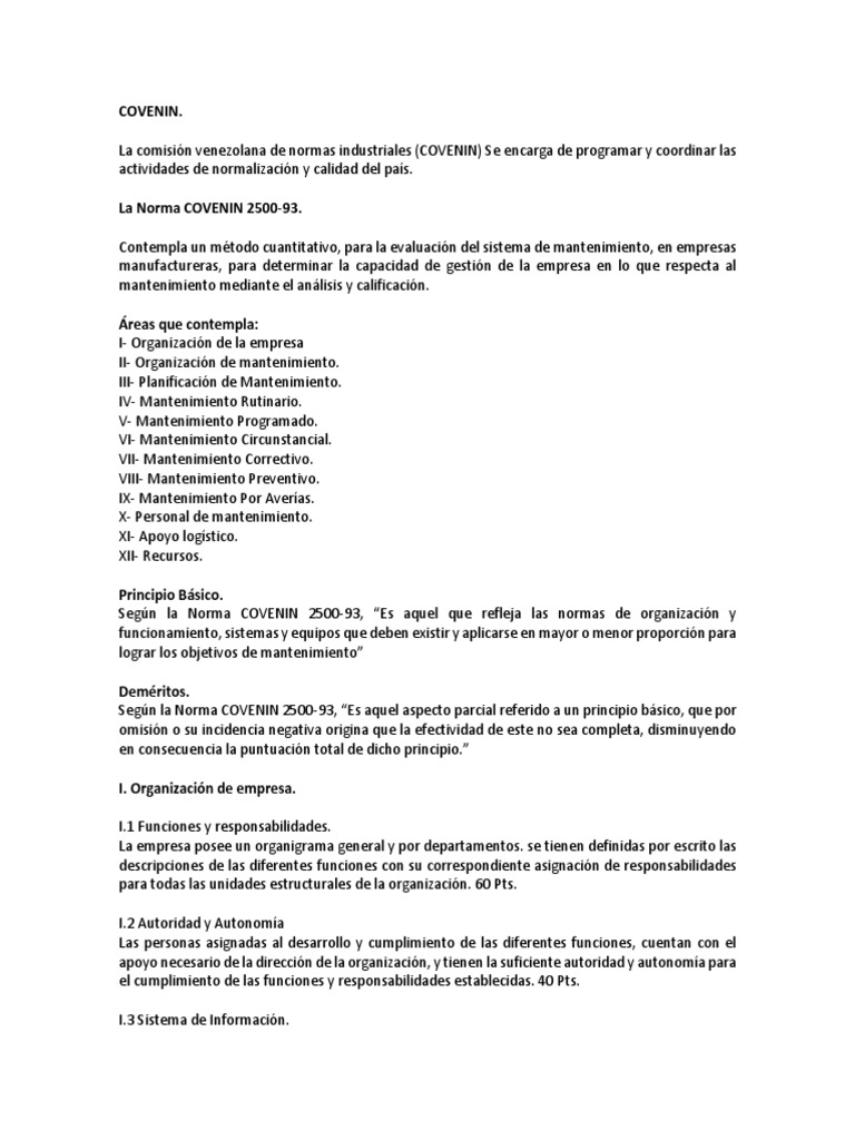La Norma COVENIN 2500-93.