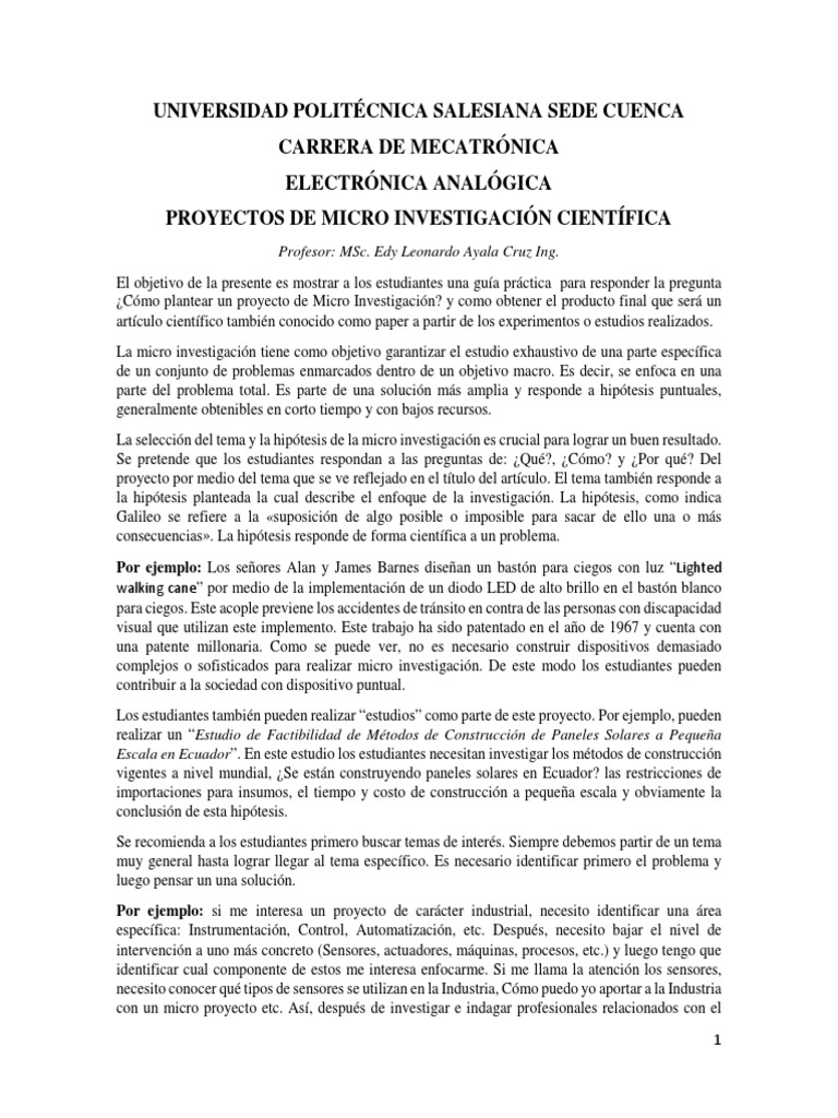Cmo plantear un proyecto de Micro Investigacin? y como obtener el producto final que ser un