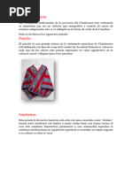 florales, geomtricos y patrios. Se complementa con un sombrero de pao, hualcas o collares, centro plisado y