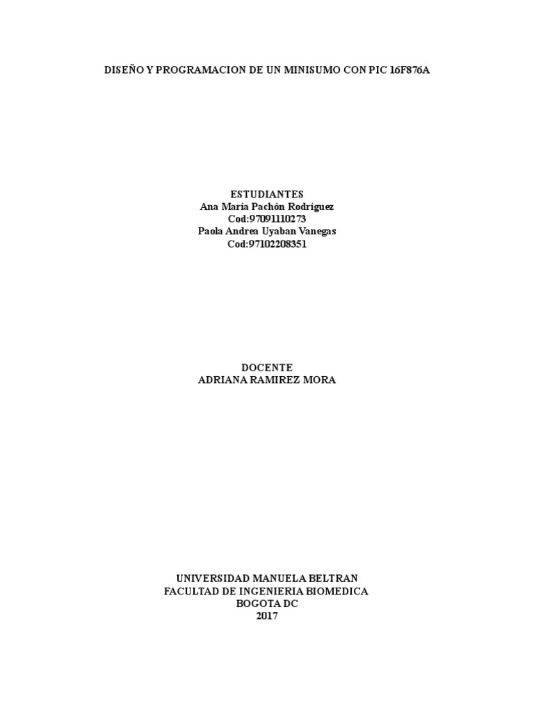 El proyecto busca crear un diseo propio de robot Minisumo por medio de un PIC o