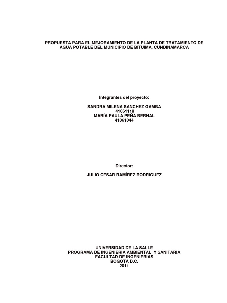 municipio de Bituima, Cundinamarca a travs del mejoramiento de su planta de