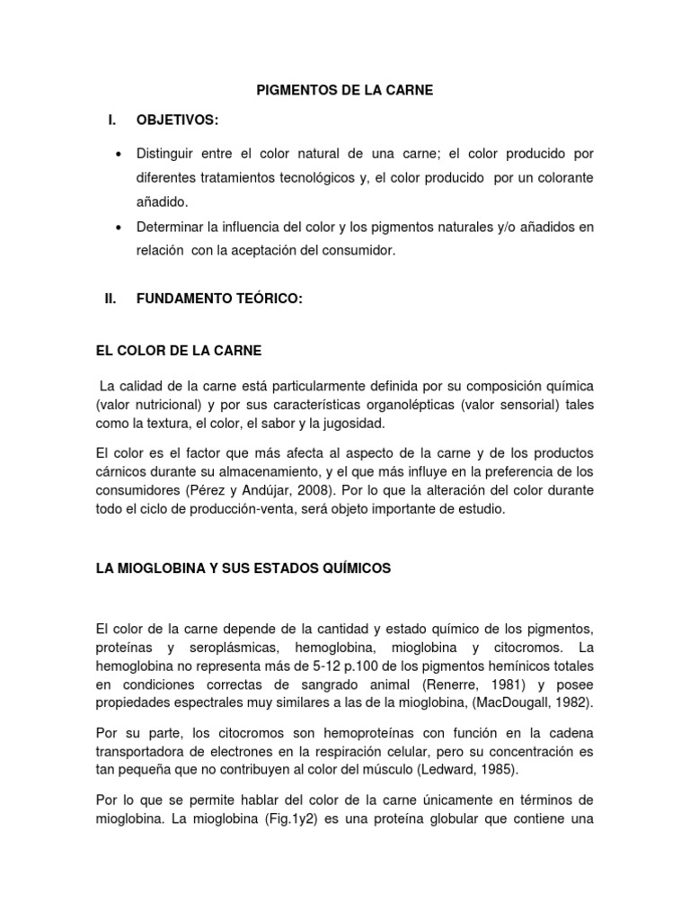 El color de la carne depende de la cantidad y estado qumico de los pigmentos,