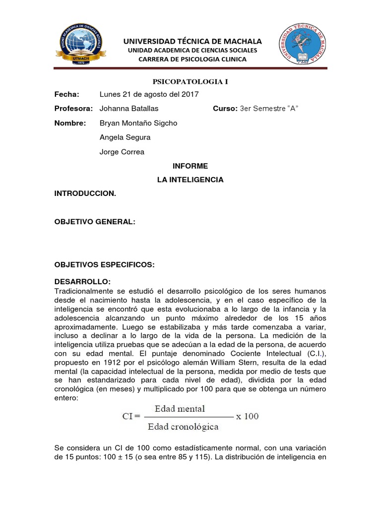 estriba en la familiaridad general del trmino Cociente Intelectual (CI). Uno de