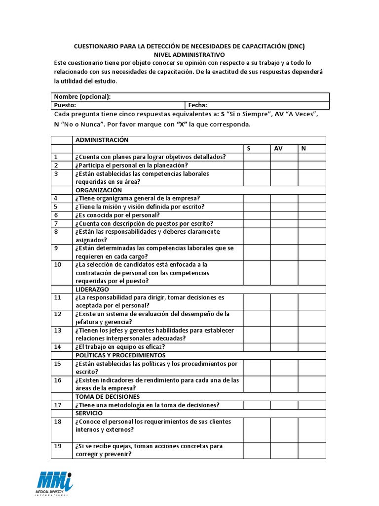 CUESTIONARIO PARA LA DETECCIN DE NECESIDADES DE CAPACITACIN (DNC)