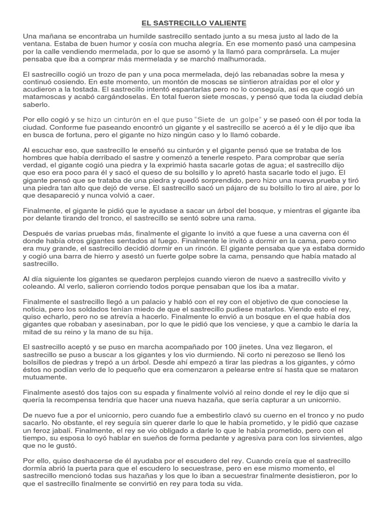 ciudad. Conforme fue paseando encontr un gigante y el sastrecillo se acerc a l y le dijo que iba