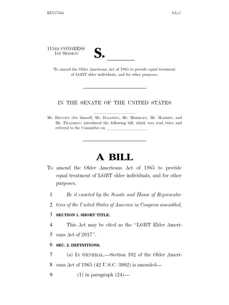 To amend the Older Americans Act of 1965 to provide equal treatment of LGBT older individuals, and for other purposes.