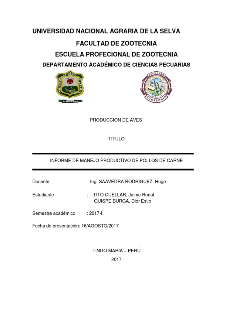 INFORME DE MANEJO PRODUCTIVO DE POLLOS DE CARNE