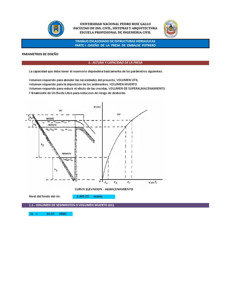 PARTE I : DISEO DE LA PRESA DE EMBALSE POTRERO