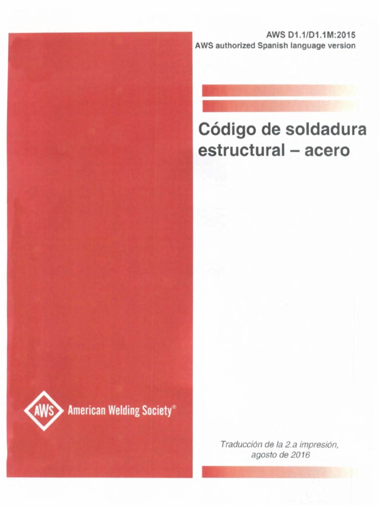 la regulacin de la soldadura en la construccin con acero. En este cdigo se incluyen nueve anexos normativos y once