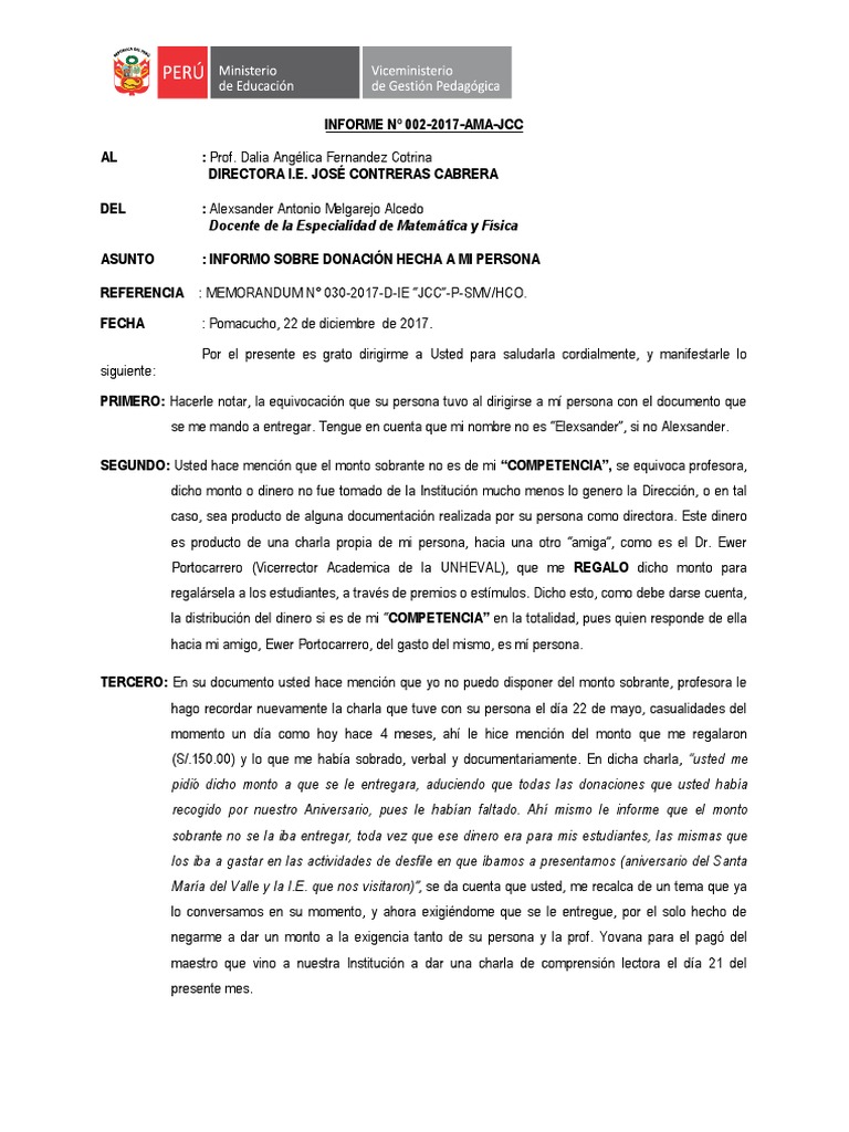 Portocarrero (Vicerrector Academica de la UNHEVAL), que me REGALO dicho monto para