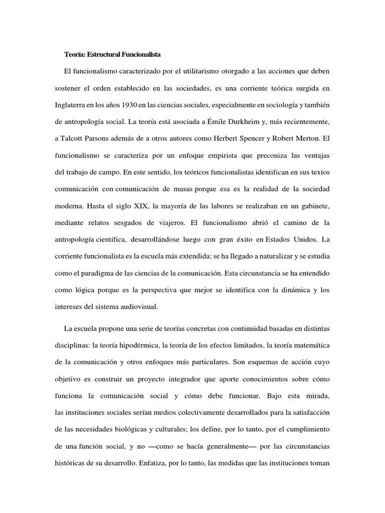 corriente funcionalista es la escuela ms extendida; se ha llegado a naturalizar y se estudia