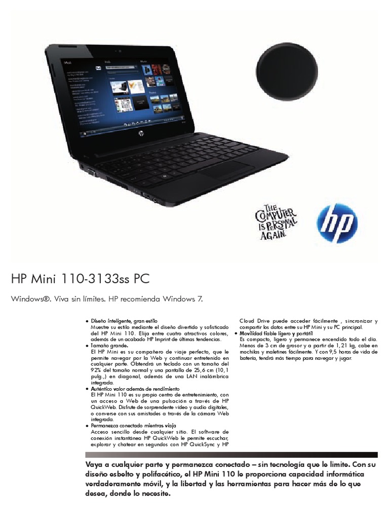 diseo esbelto y polifactico, el HP Mini 110 le proporciona capacidad informtica