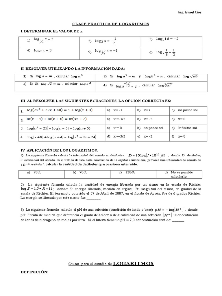 CLASE PRACTICA DE LOGARITMOS