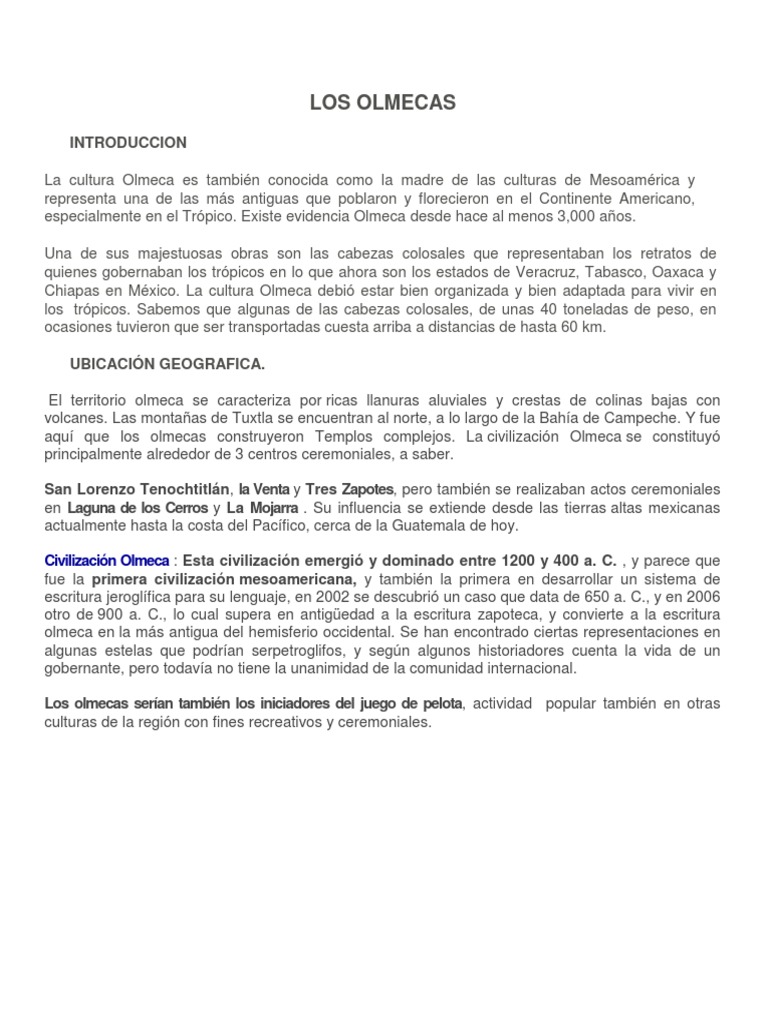 fue la primera civilizacin mesoamericana, y tambin la primera en desarrollar un sistema de