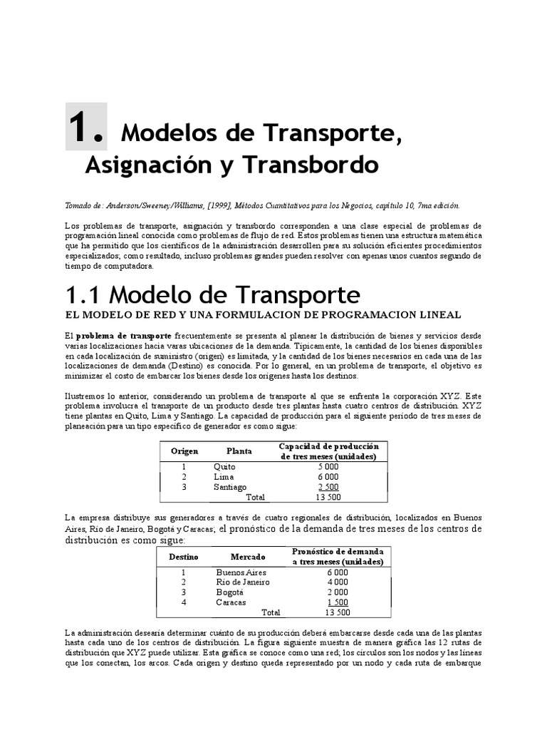 Los problemas de transporte, asignacin y transbordo corresponden a una clase especial de problemas de