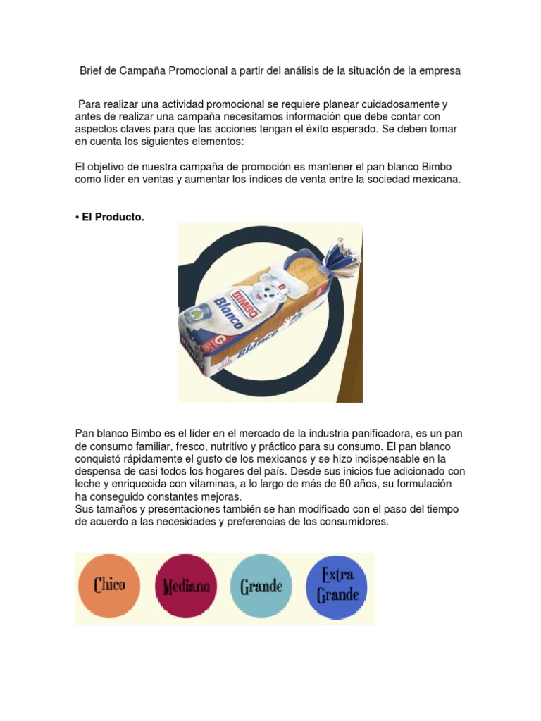 Brief de Campaa Promocional a partir del anlisis de la situacin de la empresa