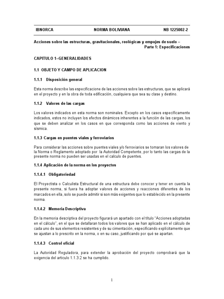 Esta norma describe las especificacione de las acciones sobre las estructuras, que se aplicar