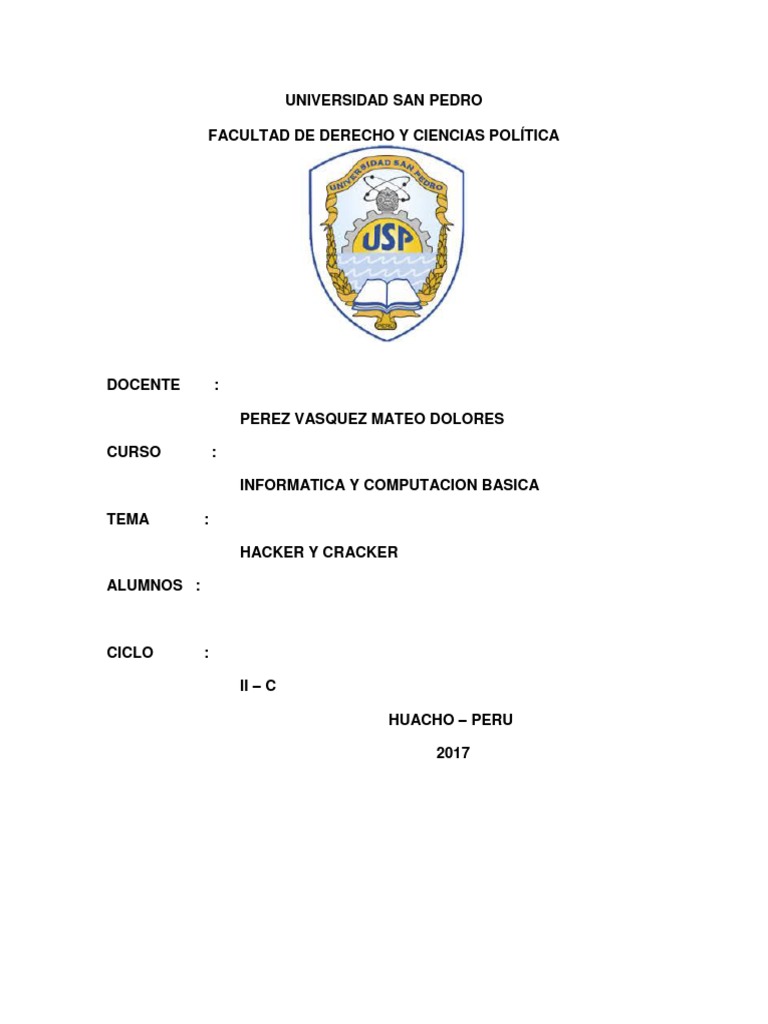 En el presente trabajo desarrollaremos los temas de hacker y cracker en la