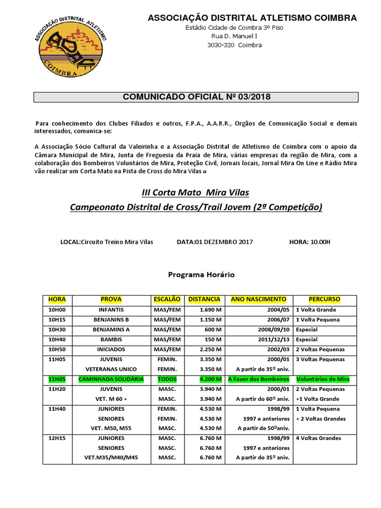 ASSOCIAO DISTRITAL ATLETISMO COIMBRA
