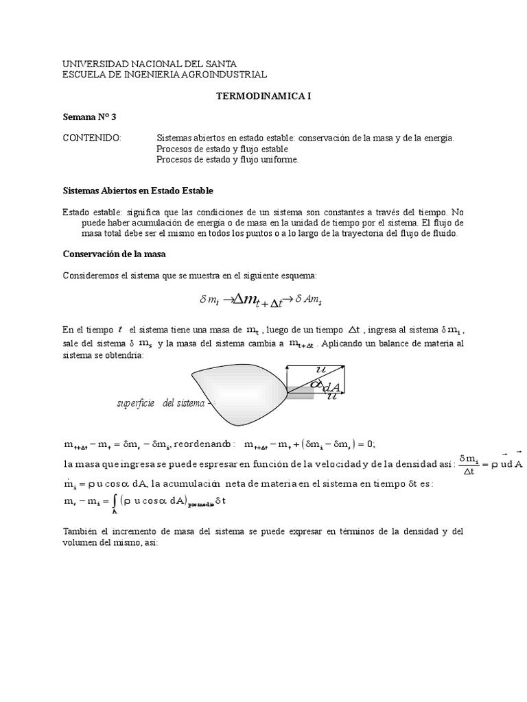 CONTENIDO: Sistemas abiertos en estado estable: conservacin de la masa y de la energa.