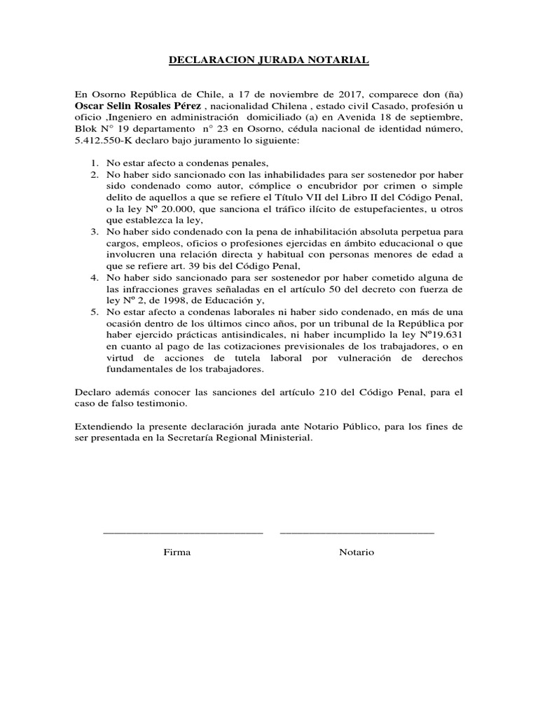 Osorno, cdula nacional de identidad nmero, 15.273.475-1 declaro bajo juramento