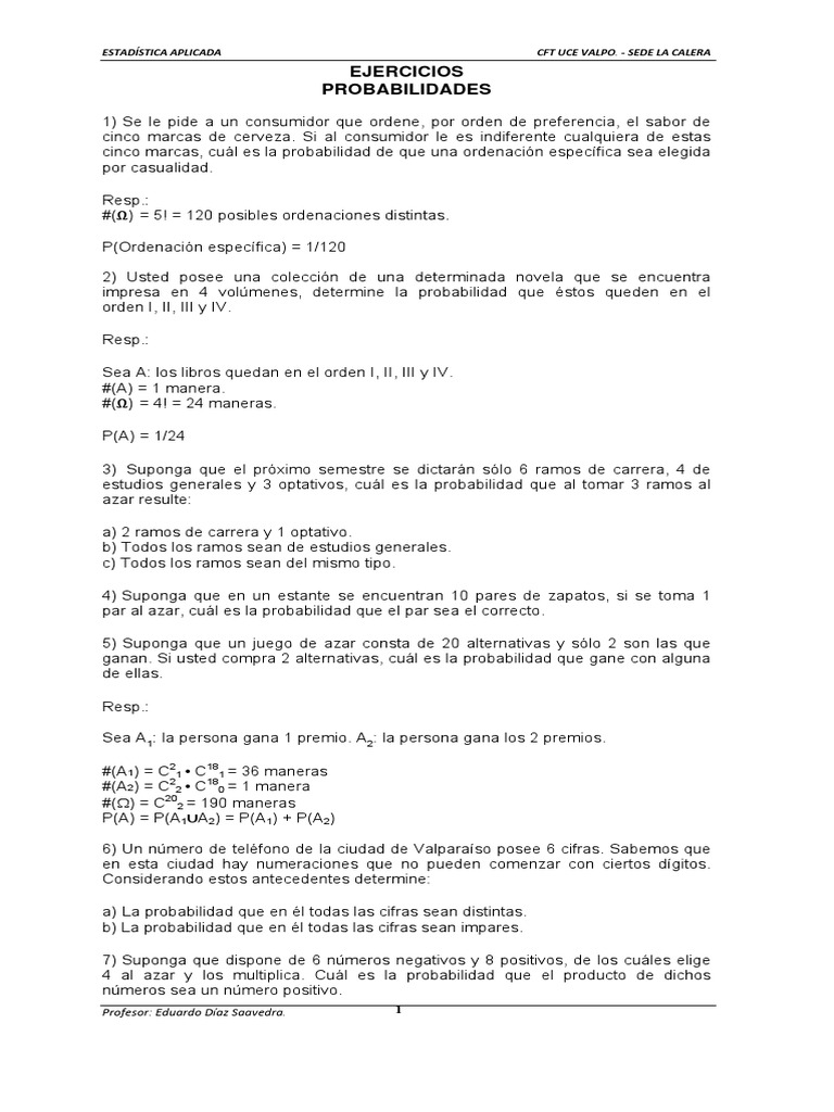 Ejercicios de Probabilidades y Estadística