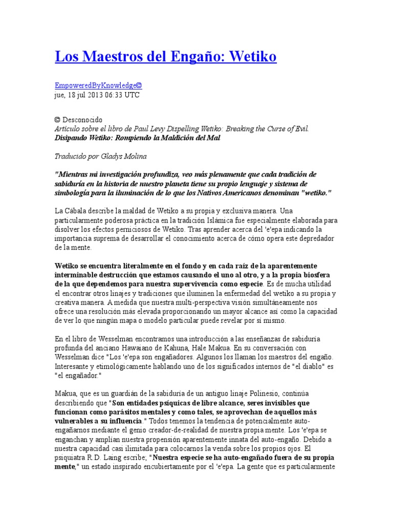 mortfera que en su libro Levy denomina "wetiko-lgica." El virus 'e'epa/wetiko influir a