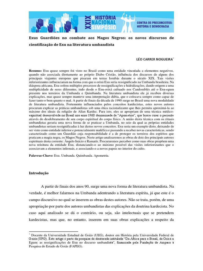 Resumo: Exu quase sempre foi visto no Brasil como uma entidade vinculada a elementos negativos,