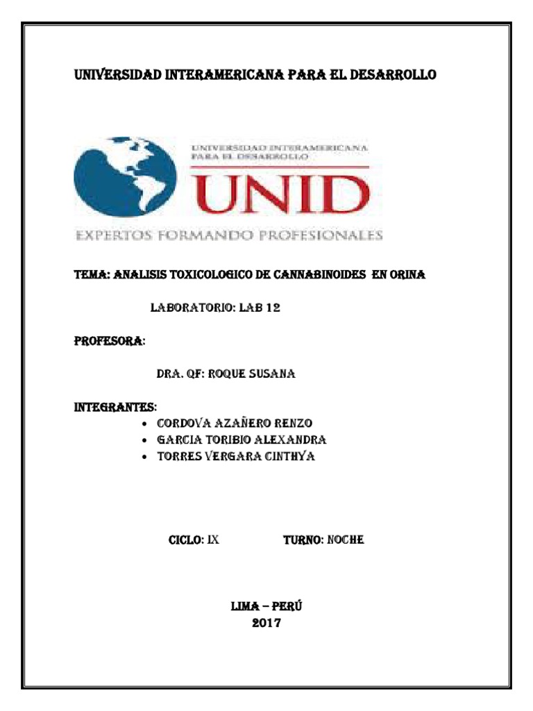 TEMA: ANALISIS TOXICOLOGICO DE cannabinoides EN ORINA