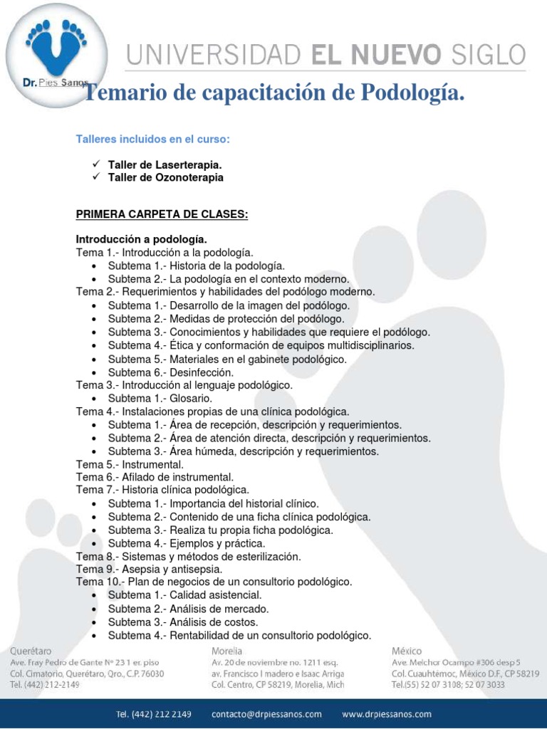 Temario de capacitacin de Podologa.