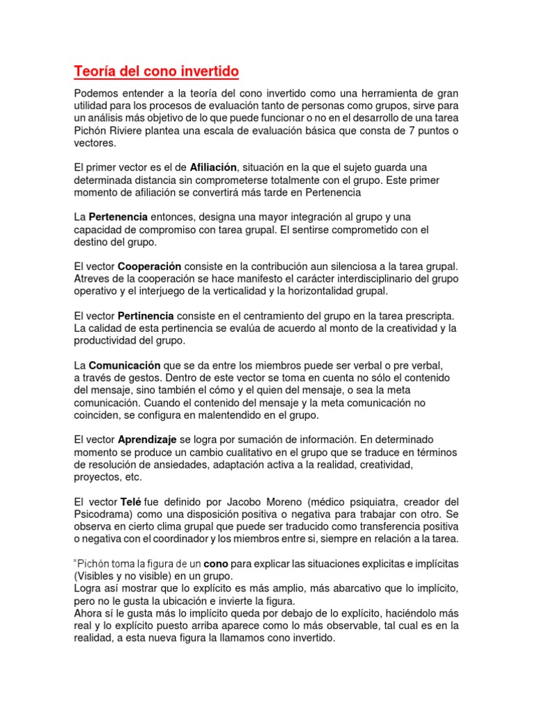 Pichn toma la figura de un cono para explicar las situaciones explicitas e implcitas