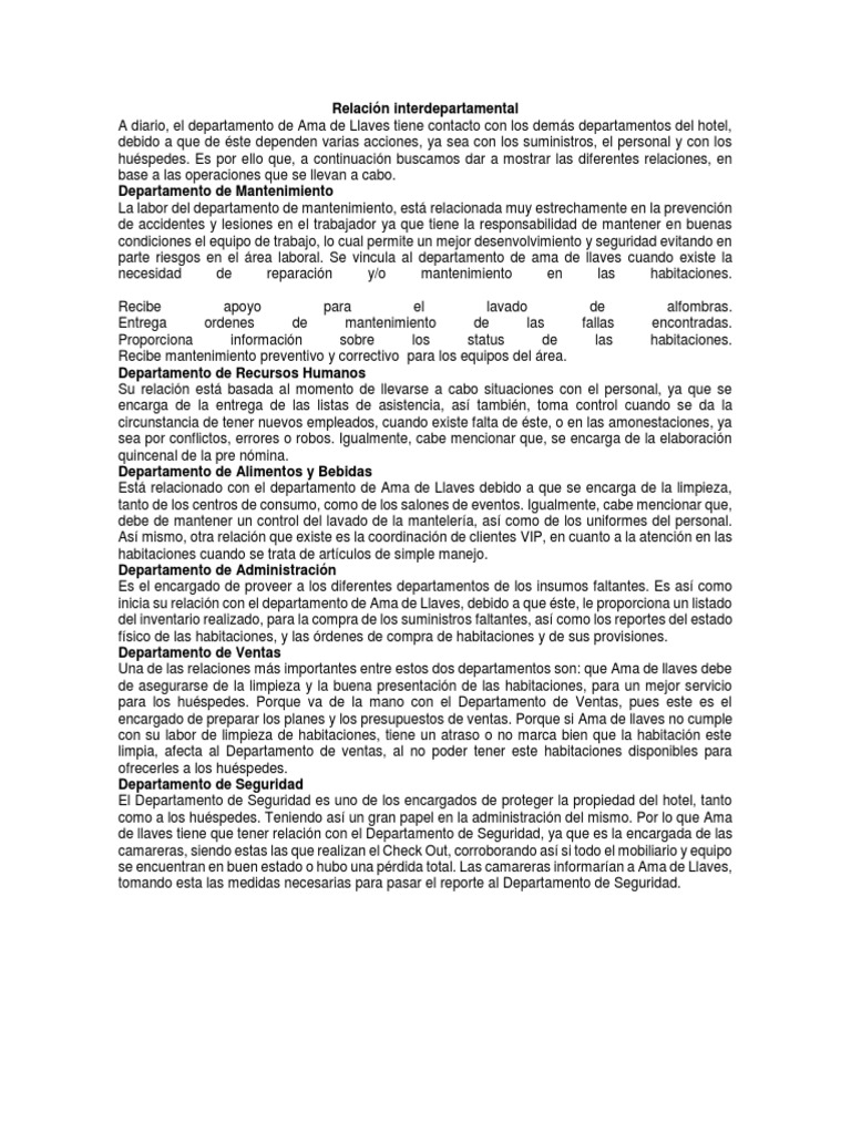 Una de las relaciones ms importantes entre estos dos departamentos son: que Ama de llaves debe