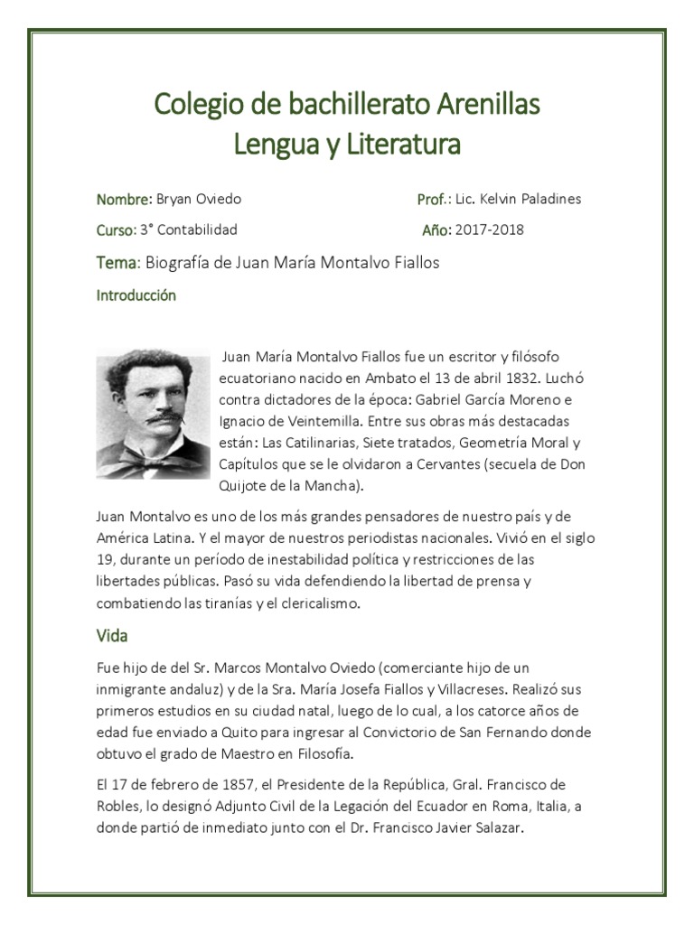 Tema: Biografa de Juan Mara Montalvo Fiallos