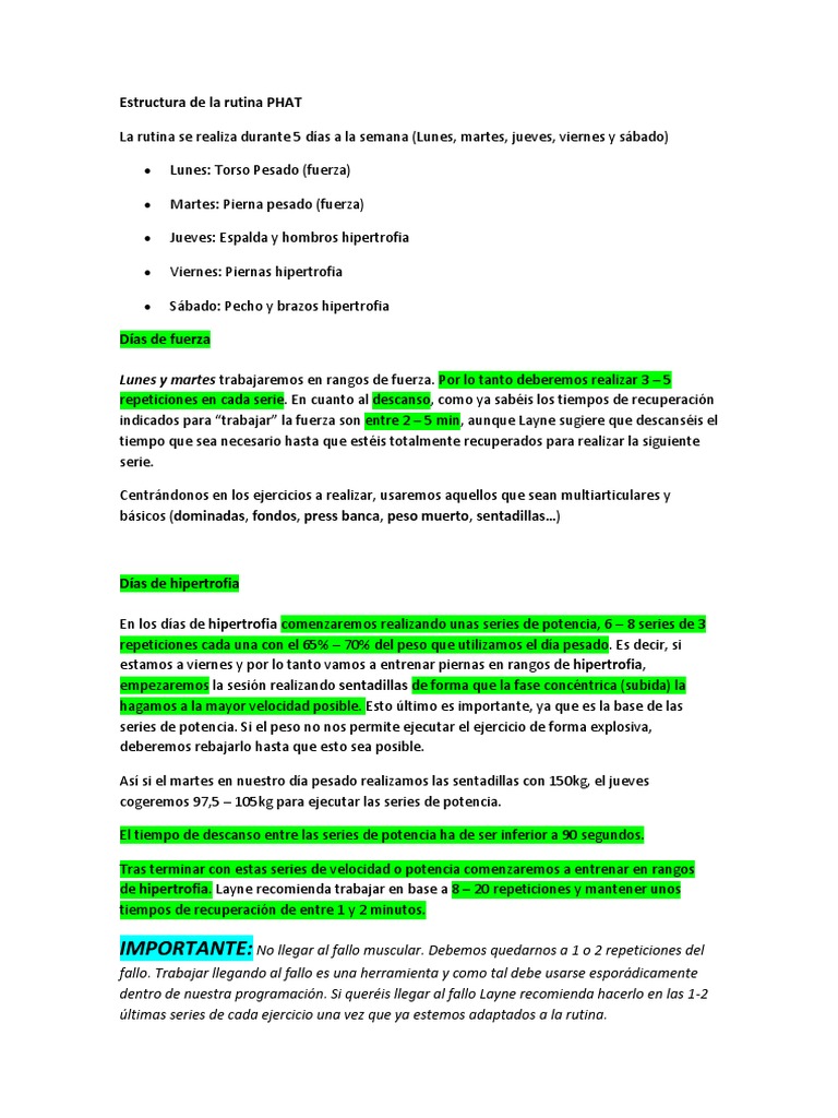 adaptar esta rutina phat a vuestras caractersticas personales realizando los cambios que sean