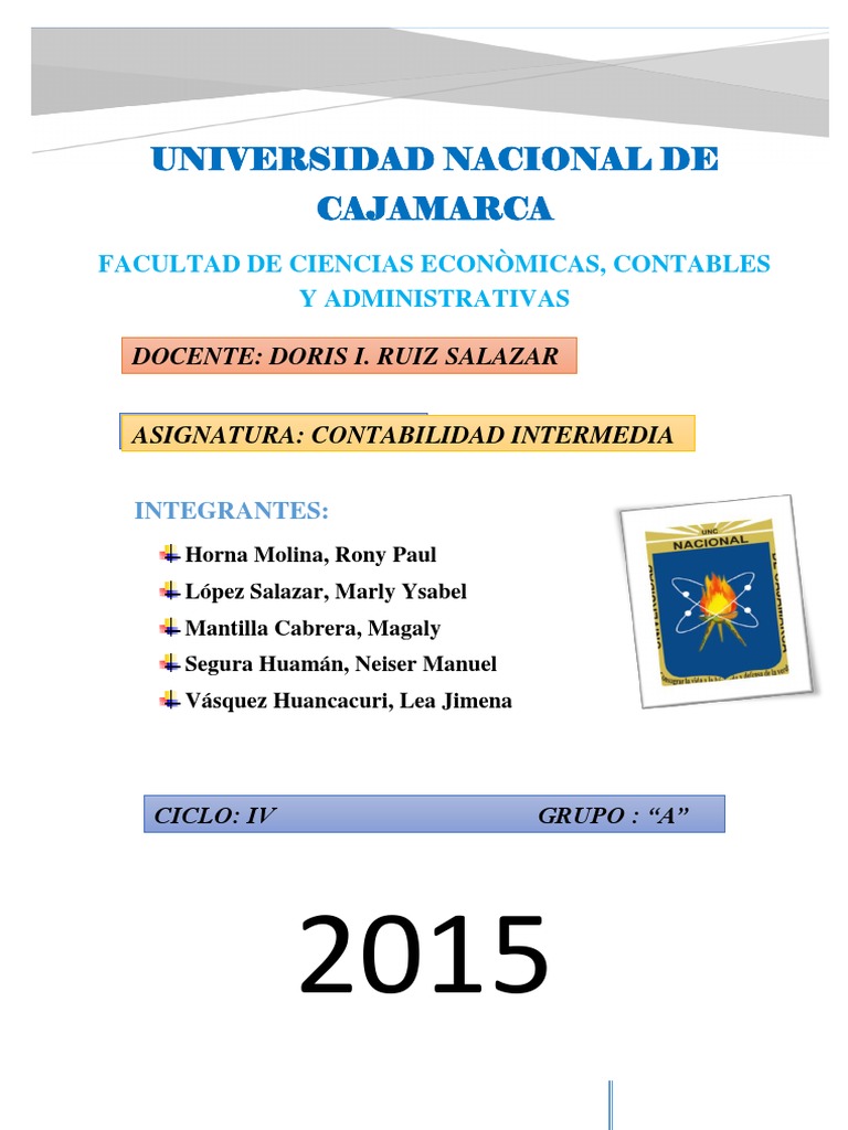 ASIGNATURA: CONTABILIDAD INTERMEDIA