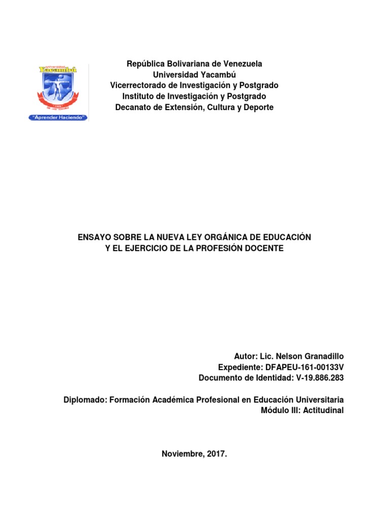 actual recorrido de la legalidad venezolana para el ejercicio docente y en materia de