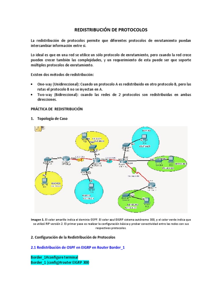 Imagen 1. El color amarillo indica el dominio OSPF. El color azul EIGRP sistema autnomo 300, y el color verde indica que