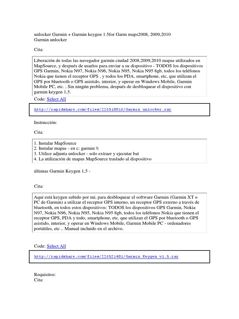 Aqu est keygen subido por m, para desbloquear el software Garmin (Garmin XT o