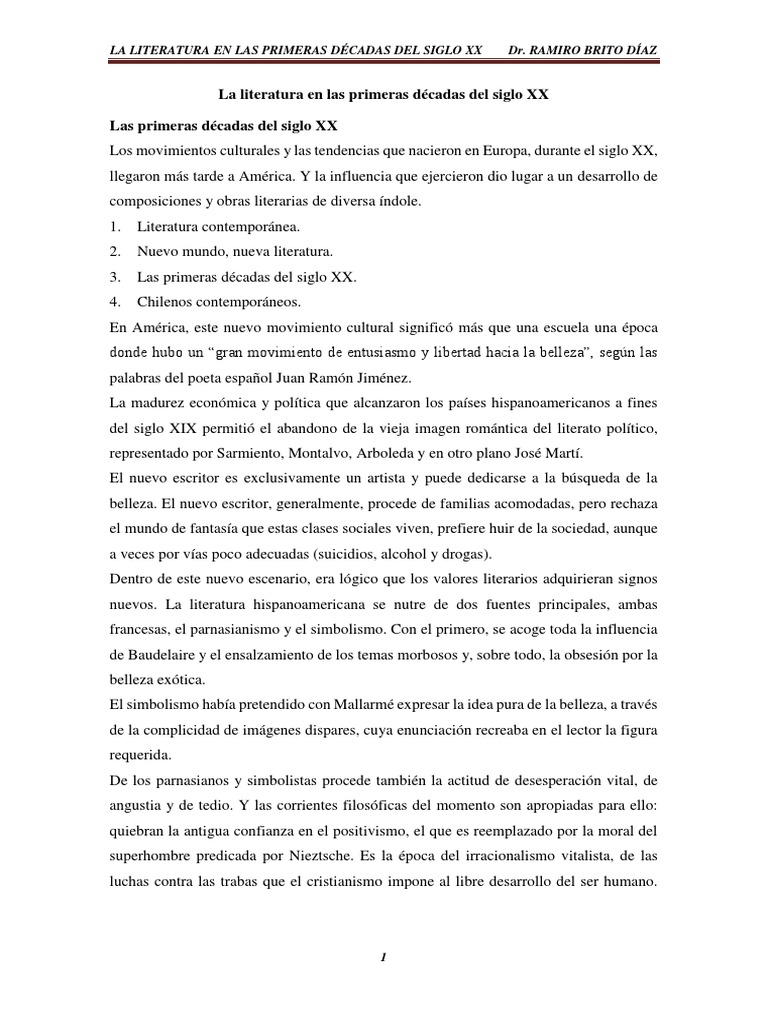 LA LITERATURA EN LAS PRIMERAS DCADAS DEL SIGLO XX Dr. RAMIRO BRITO DAZ