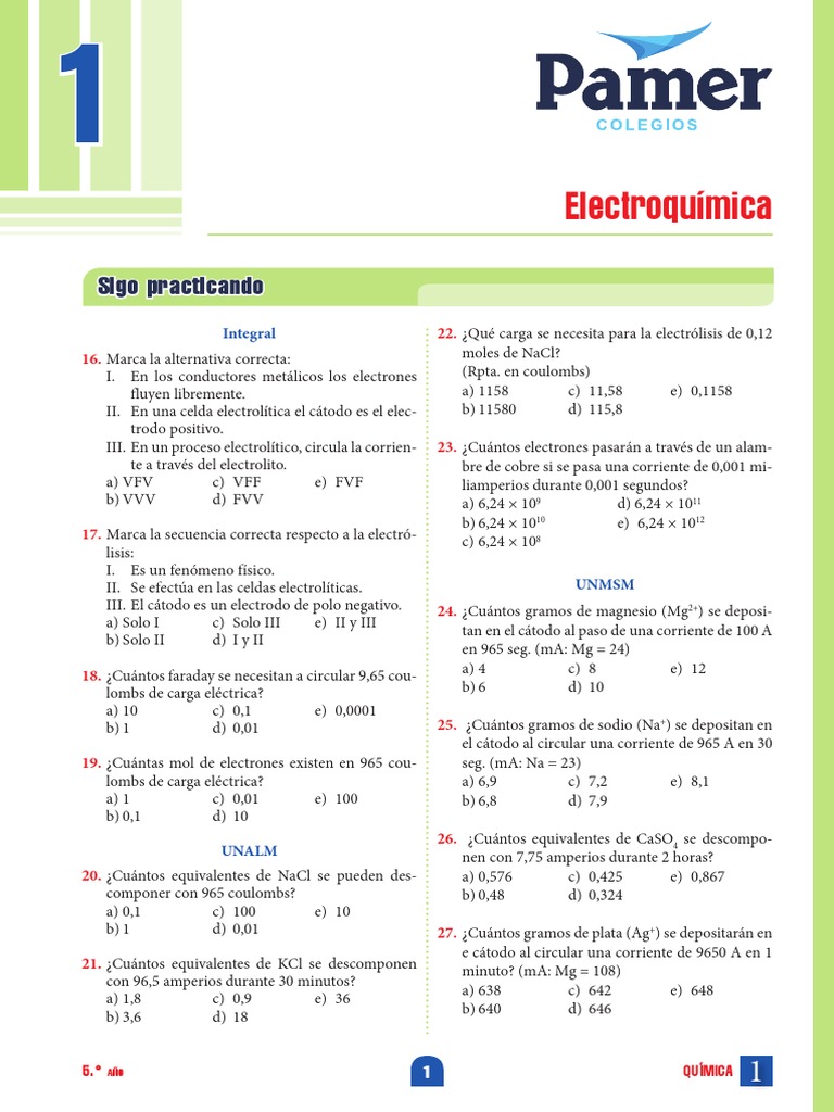 18. Cuntos faraday se necesitan a circular 9,65 cou- a) 4 c) 8 e) 12