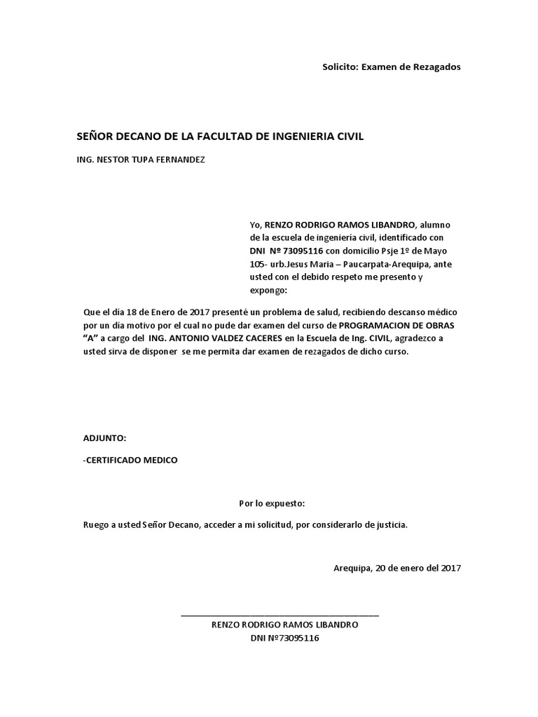 Ruego a usted Seor Decano, acceder a mi solicitud, por considerarlo de justicia.