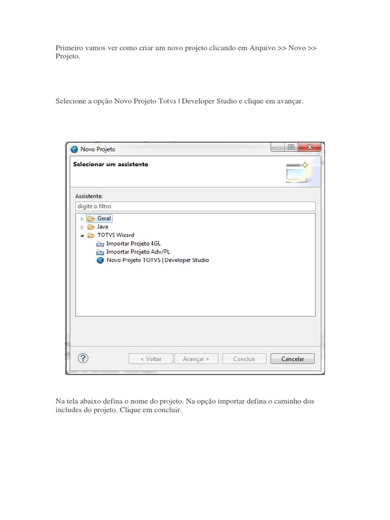 Na tela abaixo defina o nome do projeto. Na opo importar defina o caminho dos