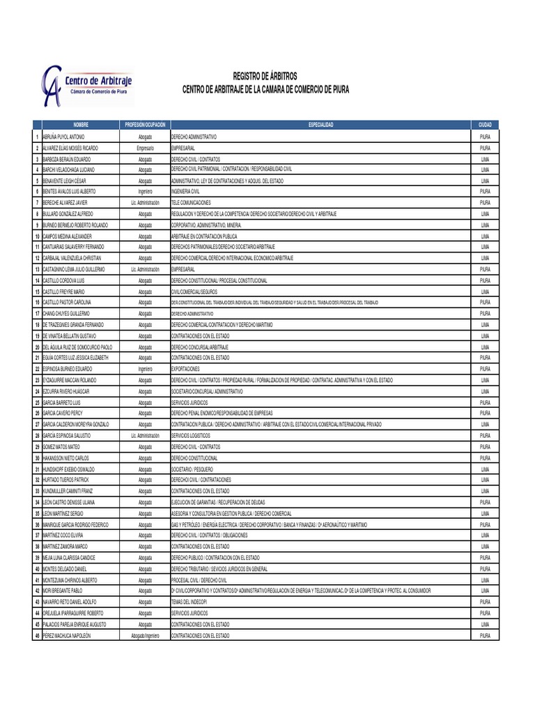 CENTRO DE ARBITRAJE DE LA CAMARA DE COMERCIO DE PIURA