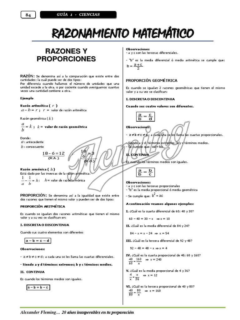 - a b c d ; a cada una se les llama las cuartas diferenciales. IV. Cul es la cuarta proporcional de 40; 60 y 160?