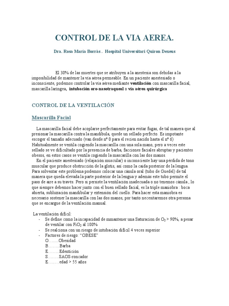 inconsciente, podemos controlar la va area mediante ventilacin con mascarilla facial,