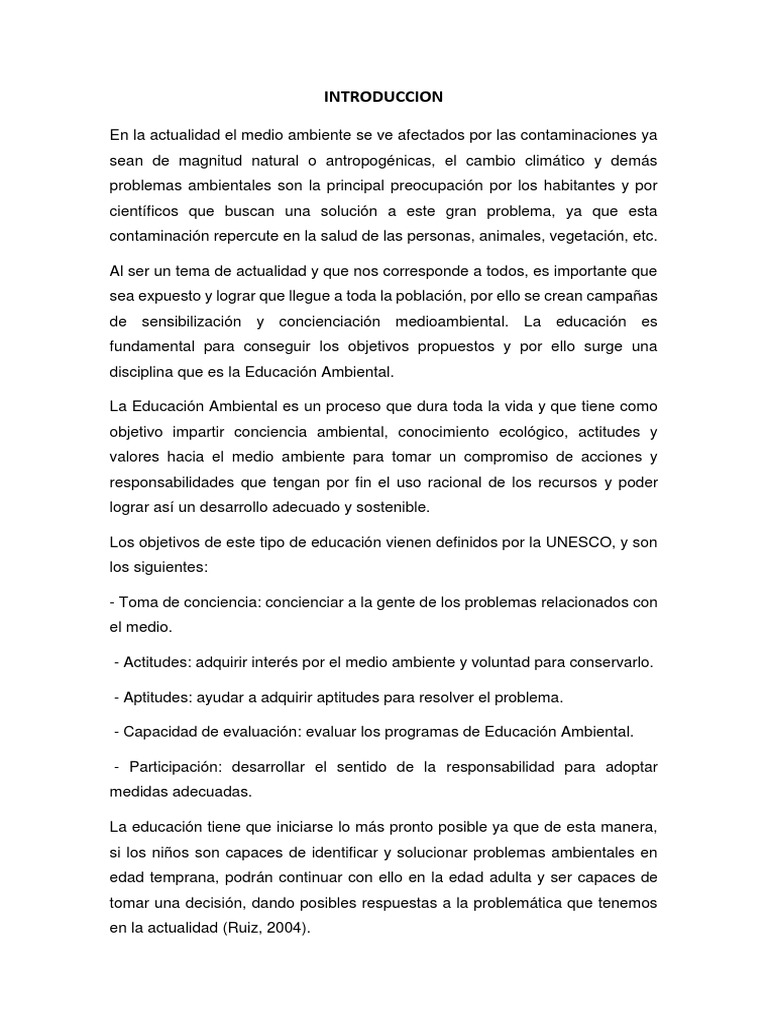 de sensibilizacin y concienciacin medioambiental. La educacin es